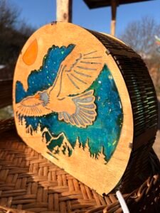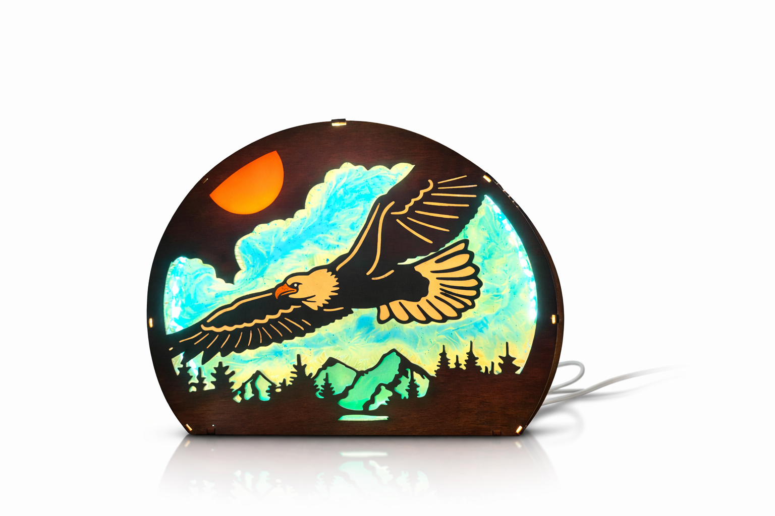 Questa lampada artigianale nasce dall’incontro tra legno, luce e immaginazione. La sagoma dell’aquila in volo, simbolo di libertà e forza, prende forma attraverso una lavorazione attenta e dettagliata, valorizzata da un’illuminazione morbida e avvolgente.